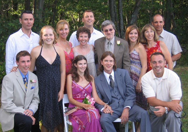 Friedrichs, Jessica & Matt Fagerburg, Jonathan Friedrichs, Traute Freundlich ; Front Front: Ellen Friedrichs, Joe Fiorentino with Clementine, Natasha and Kyle