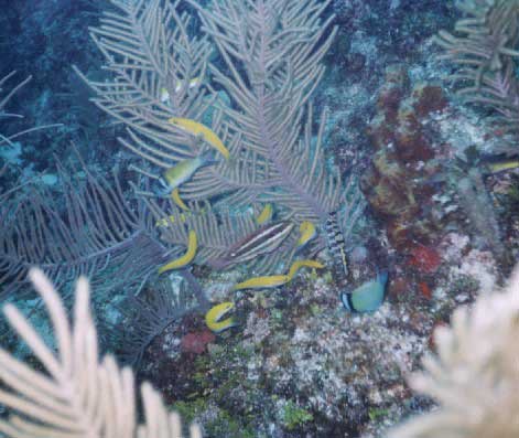 Our first dive, on the first morning, was just a ten minutes boat ride from the town to the local reef where we saw the expected beautiful fish and coral in crystal clear waters with 70 feet visibility. It was on our second dive (that same morning) that we realized this might not be an ordinary trip. |