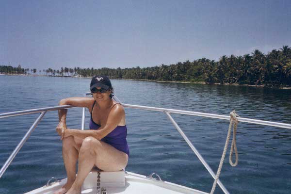 Well we were out there on a perfect day and snorkeling just did not €� and had only done two post certification dives before this trip, neither one more the 40 feet down. This dive has to be done on a strict schedule – 4 minutes to equalize, 7 minutes on the "bottom" and the rest of the time decompressing on a graduated accent. At 50 feet down on the edge of the hole we successfully equalized - at least to that point – and we both steeped off the edge and plunged in a kind of free fall straight down. It rapidly got darker, much colder and murkier as the pressure grew. In what seemed less then a minute we found ourselves passing the 110 foot point. Randye leveled off at 132 feet I did at 140. Incredibly the whole area and visibility clears at this point with pitch darkness above and below. We could swim among the gigantic stalactites and stalagmites as the cave widened out past the hole’s 1000 foot diameter. A bull shark circled above apparently guarding the exit. It was at this point I discovered I had gone through more than 2/3 of my oxygen in only the first 1/3 of the dive. I first thought maybe I had been hyper ventilating but then discovered my regulator hose had sprung a leak at the connection point. My hand over the leak did not work and a rapid accent from this depth is absolutely not an option. I found our dive masters and pointed out my predicament. To preserve my air for my final accent I shared the air off his tank with a spare regulator. A maneuver last tried in the YMCA pool – at 6 feet depth - some three years ago. Fortunately I was not suffering from the nitrous narcosis - common at this depth. On deep dives the boat throws an extra tank in the water at the point you do your 8 minute decompression stop and I could then switch to that tank and then back to mine again for the finally ascent. |